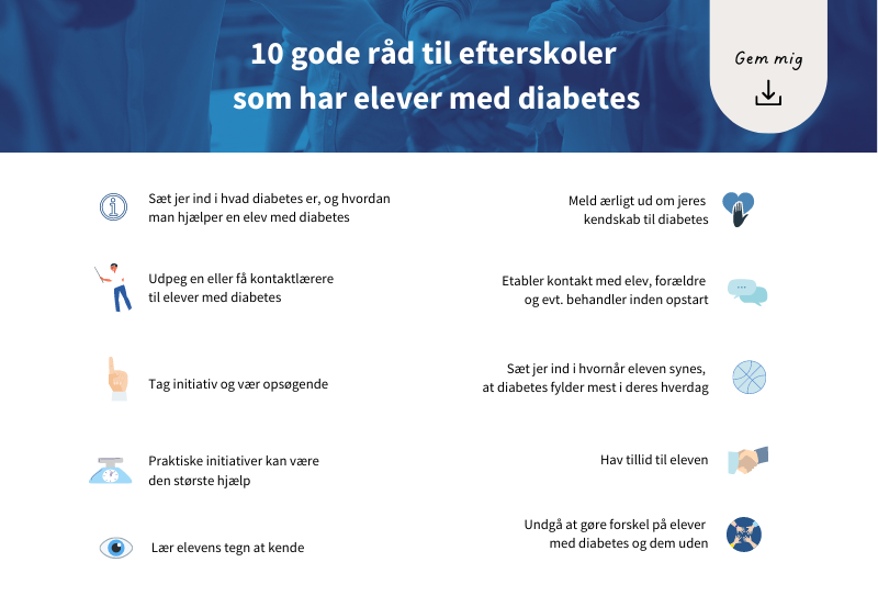 Det er enormt populært blandt danske unge at tage på efterskole, og derfor er det en overvejelse, som rigtig mange unge sammen med deres forældre gør sig for at opleve, udvikle sig og møde nye venner. Når man har type 1-diabetes, er man ung ligesom alle andre, men man kommer med den ekstra bagage at man har en kronisk sygdom, der fylder i hverdagen. Når man som efterskole modtager en elev med type 1-diabetes, kan det være en god idé for skolens, den unges og forældrenes skyld – at sætte sig ind i hvad diabetes er, og hvilken rolle man som efterskole bør